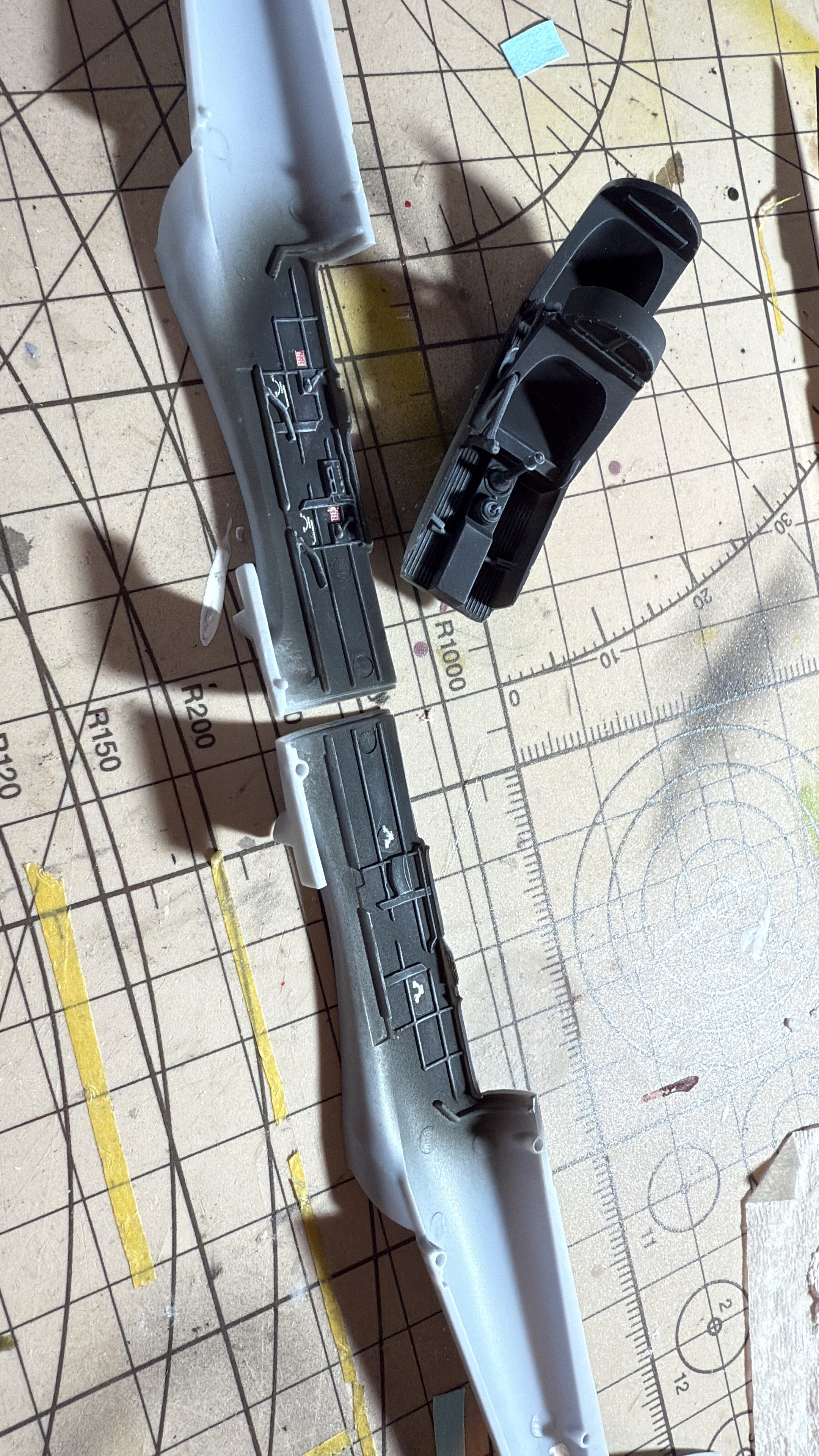 tonight I put the primer on. So over the next few weeks can do the paint job which I’m still waiting on photos so I can see some details but pretty sure it’s will be grey with a black nose area and of course its own custom decals!