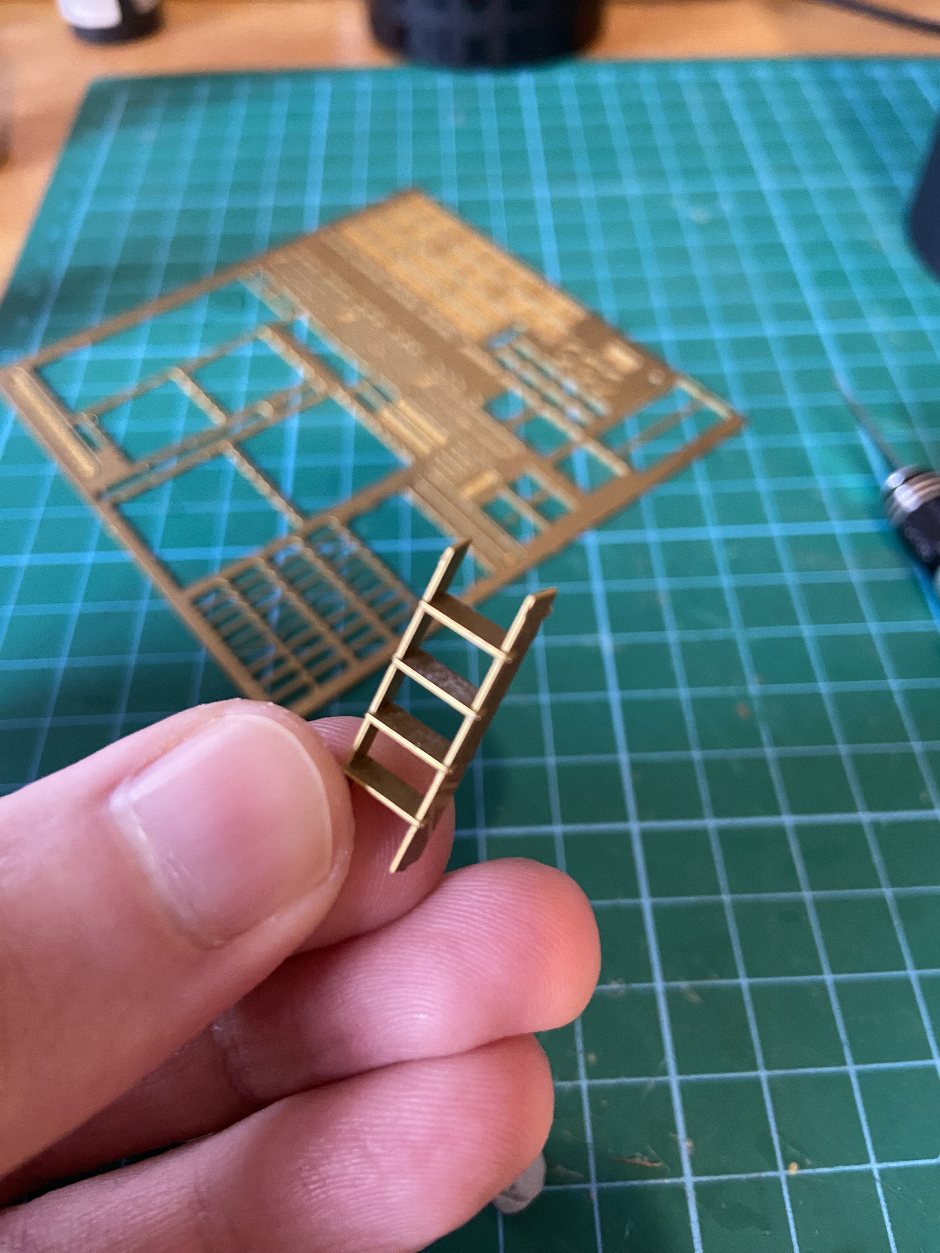 More experienced modellers seem to dislike that these parts are made of PE brass rather than wood, but I think they look good once painted with a bit of dark brown acrylic.  Nice clean edges.