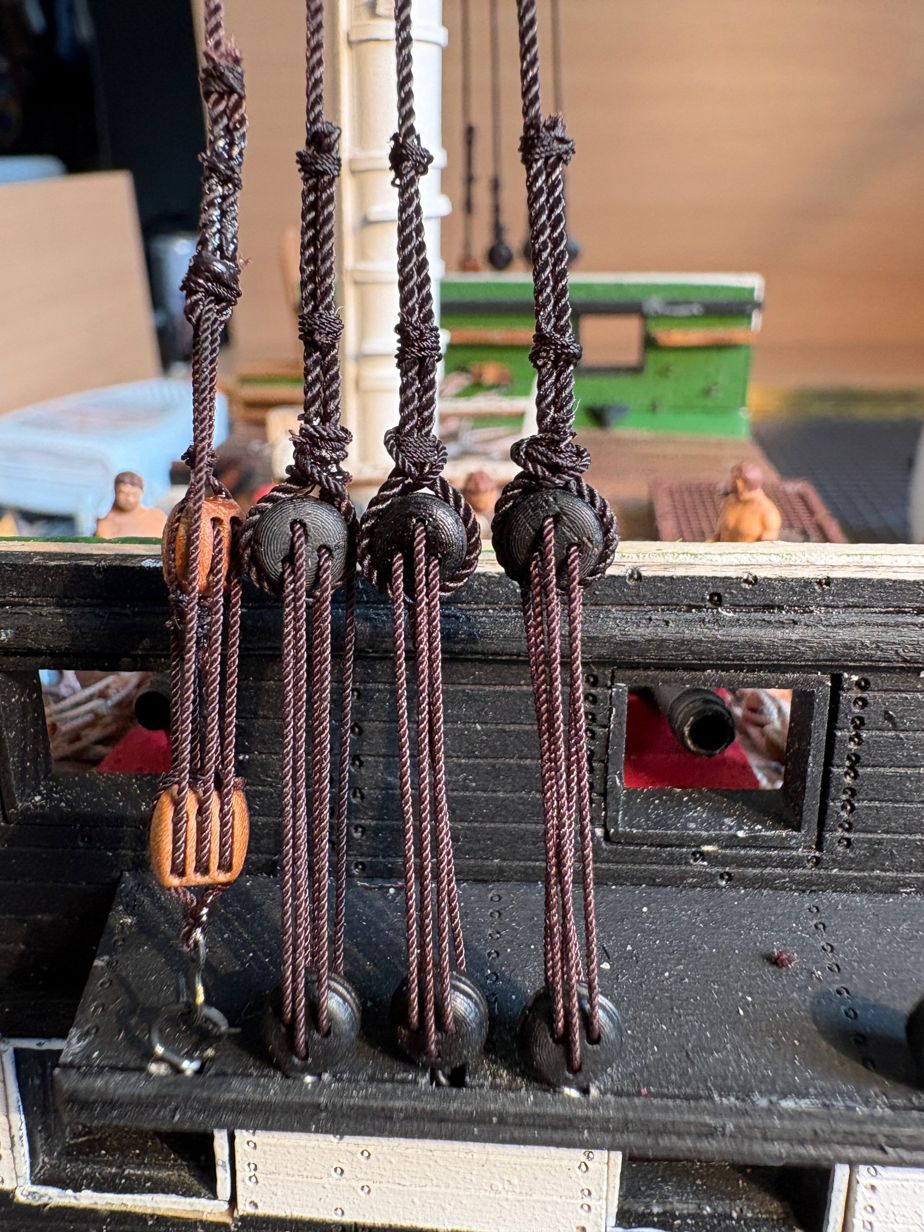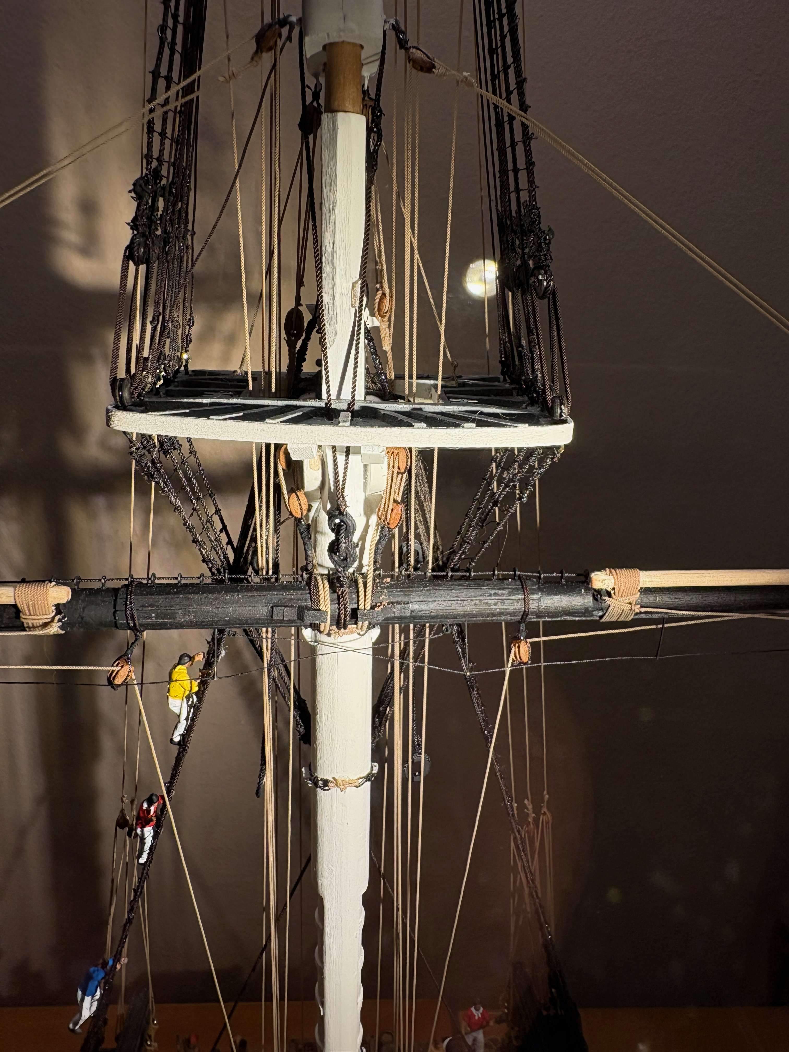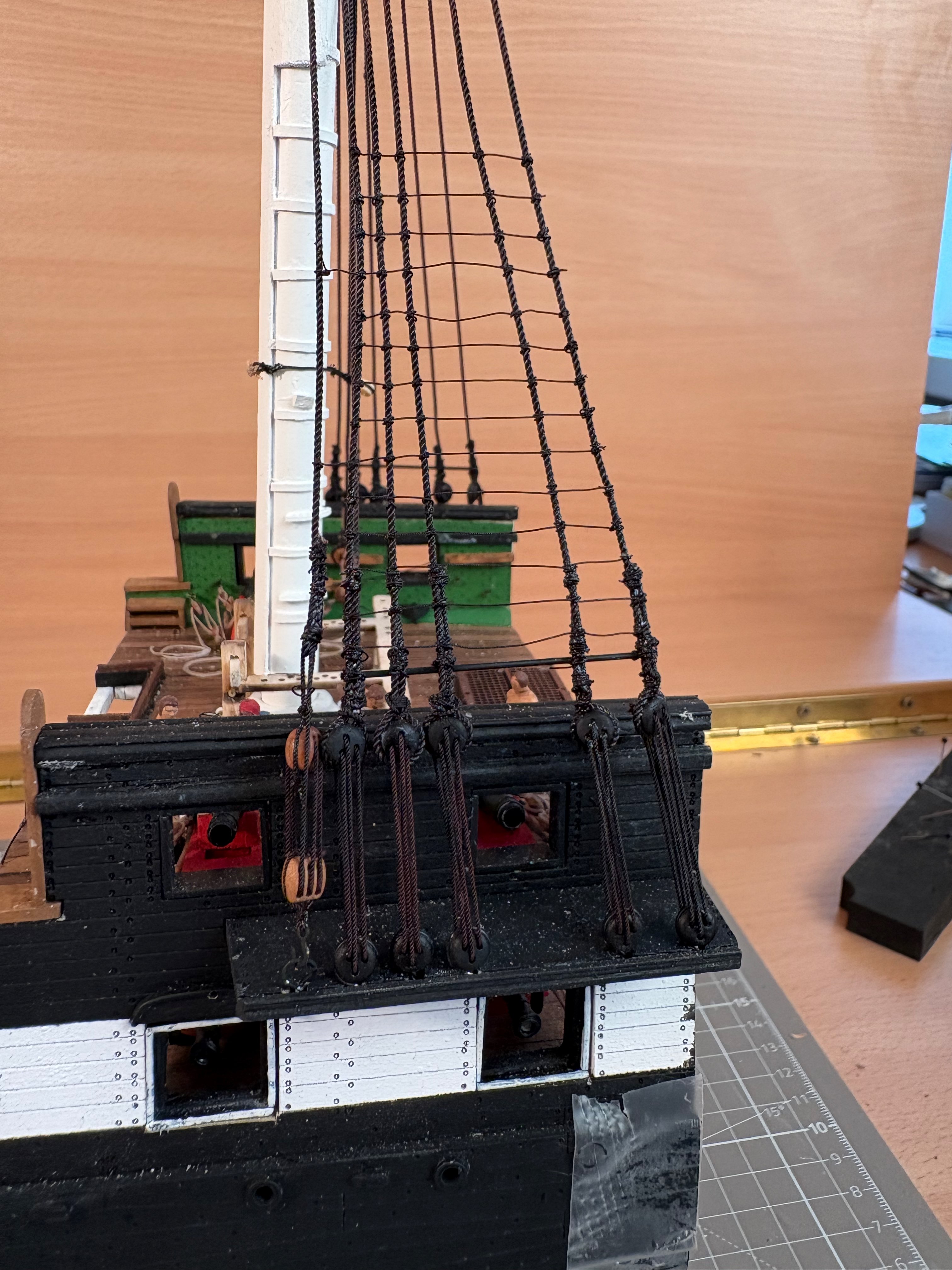 I started with the shrouds; everything to do with ropes and blocks is completely new to me.