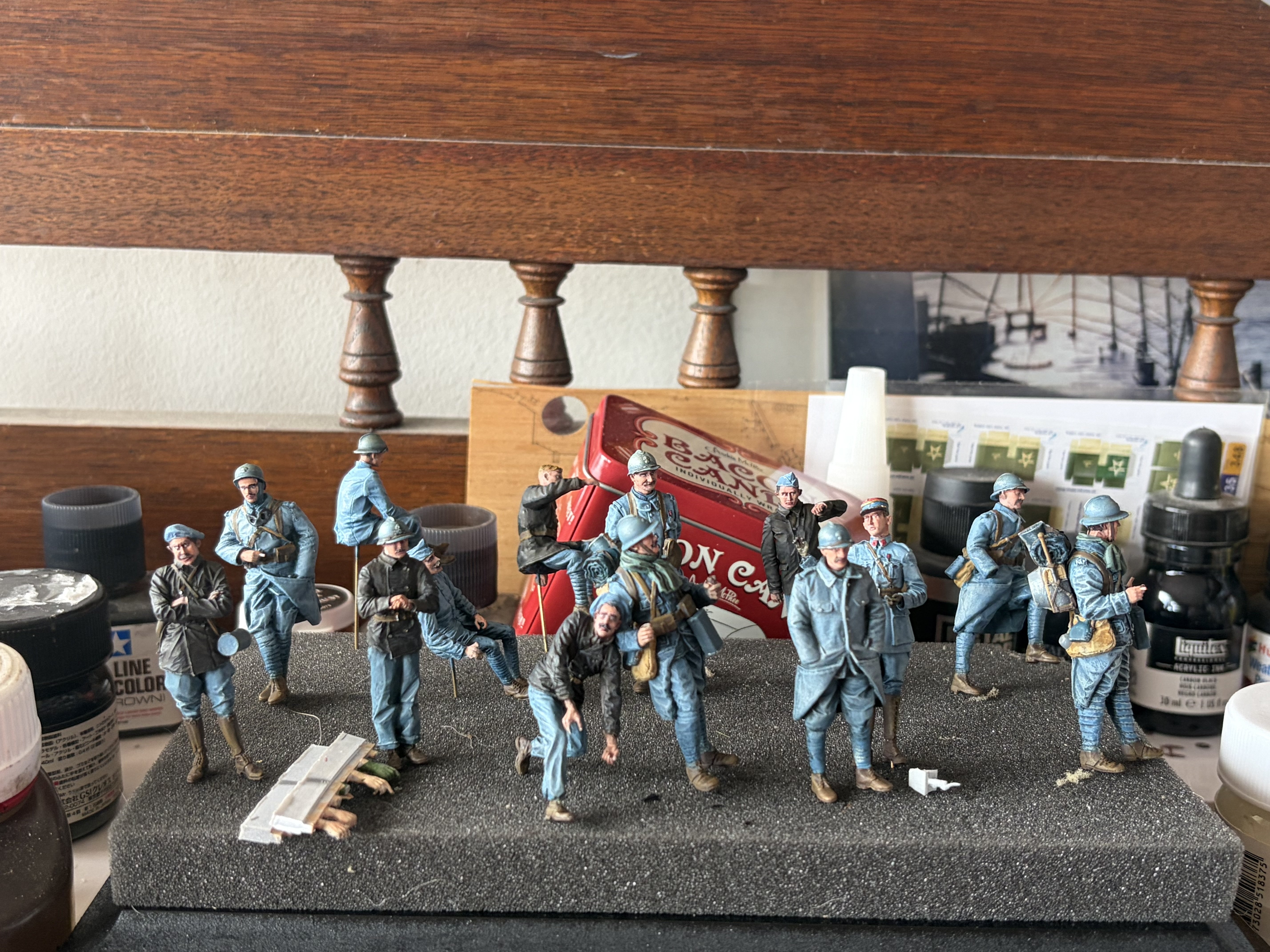 Boots done, I want to make all these blokes dusty before I add them to the base. It’s spent the entire day adding rifle straps and gas mask straps