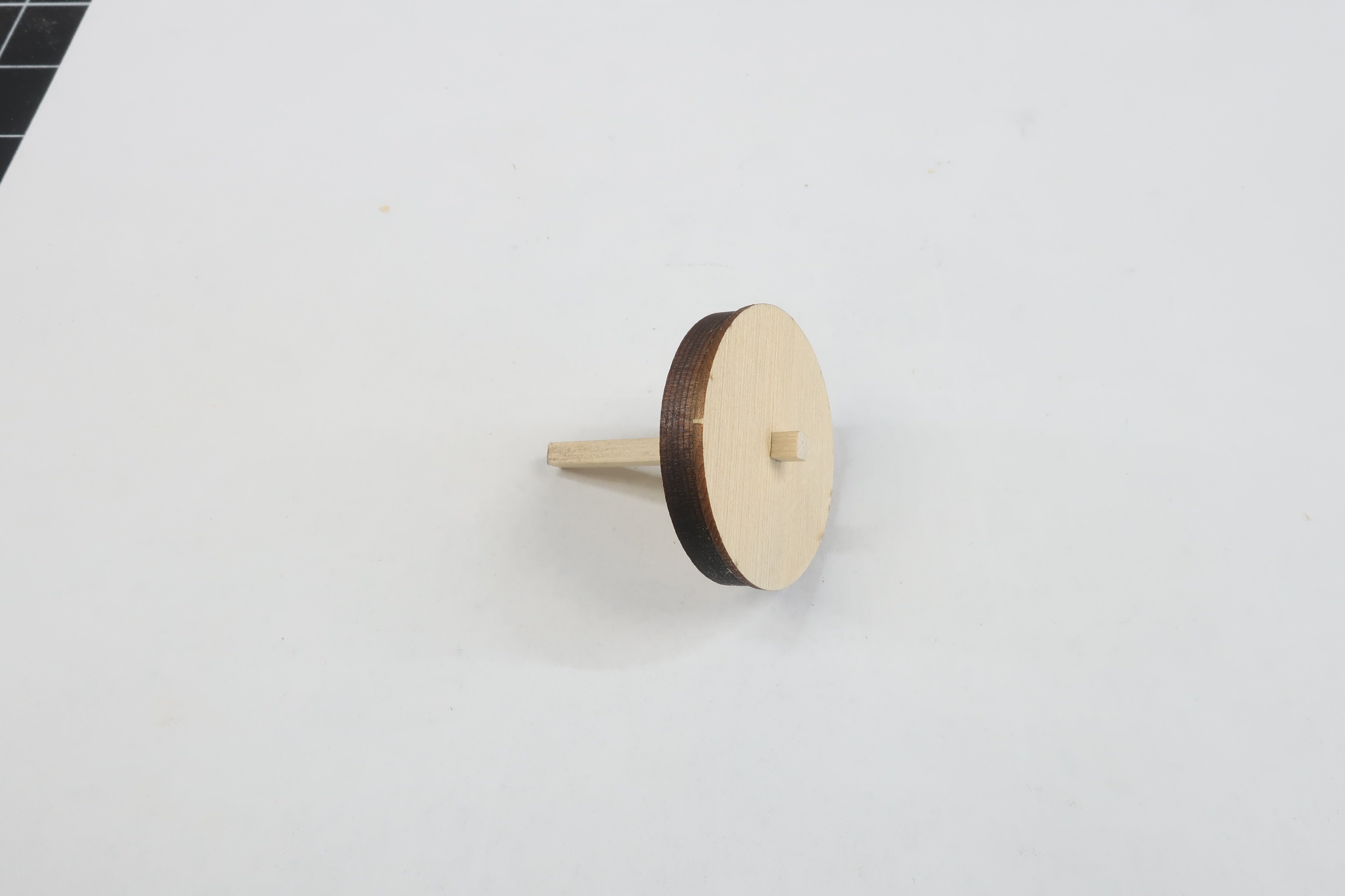 We are not going to sand any laser char off the edge of part C.   The only thing you might have to remove is the small sprue tab that supported it in the laser cut sheet.  Just a few swipes to remove that nub.  Glue the disc C to part B as before remembering not to glue it to the stick!!