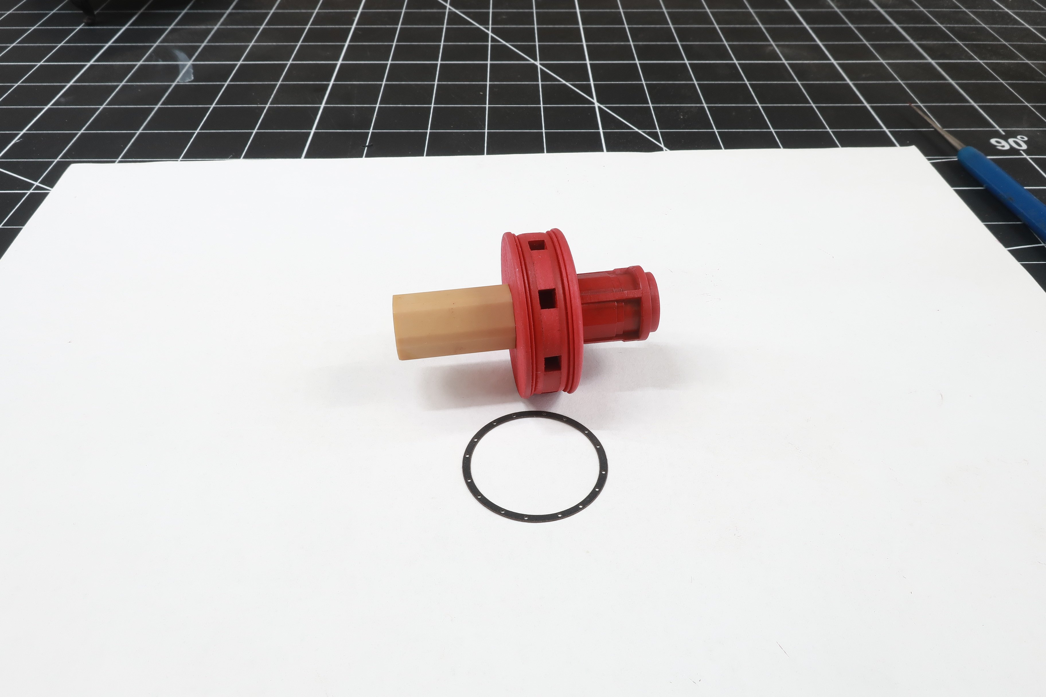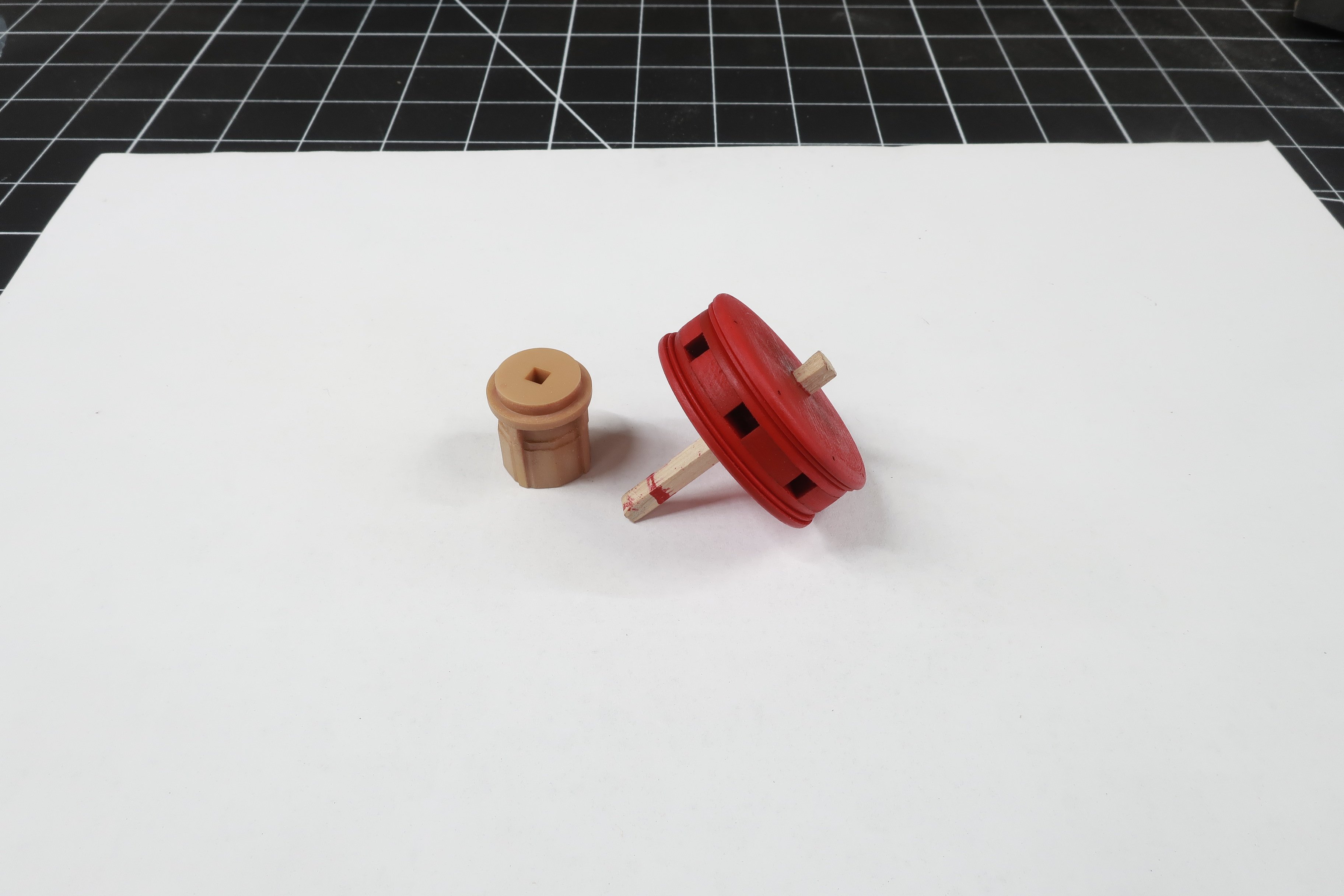 This completes the lower drum.  But I decided to paint at least the first few coats of red paint at this stage.  Also get your 3D printed center column ready.   You have 3 of these.   This is the shortest and most interesting of the three.
