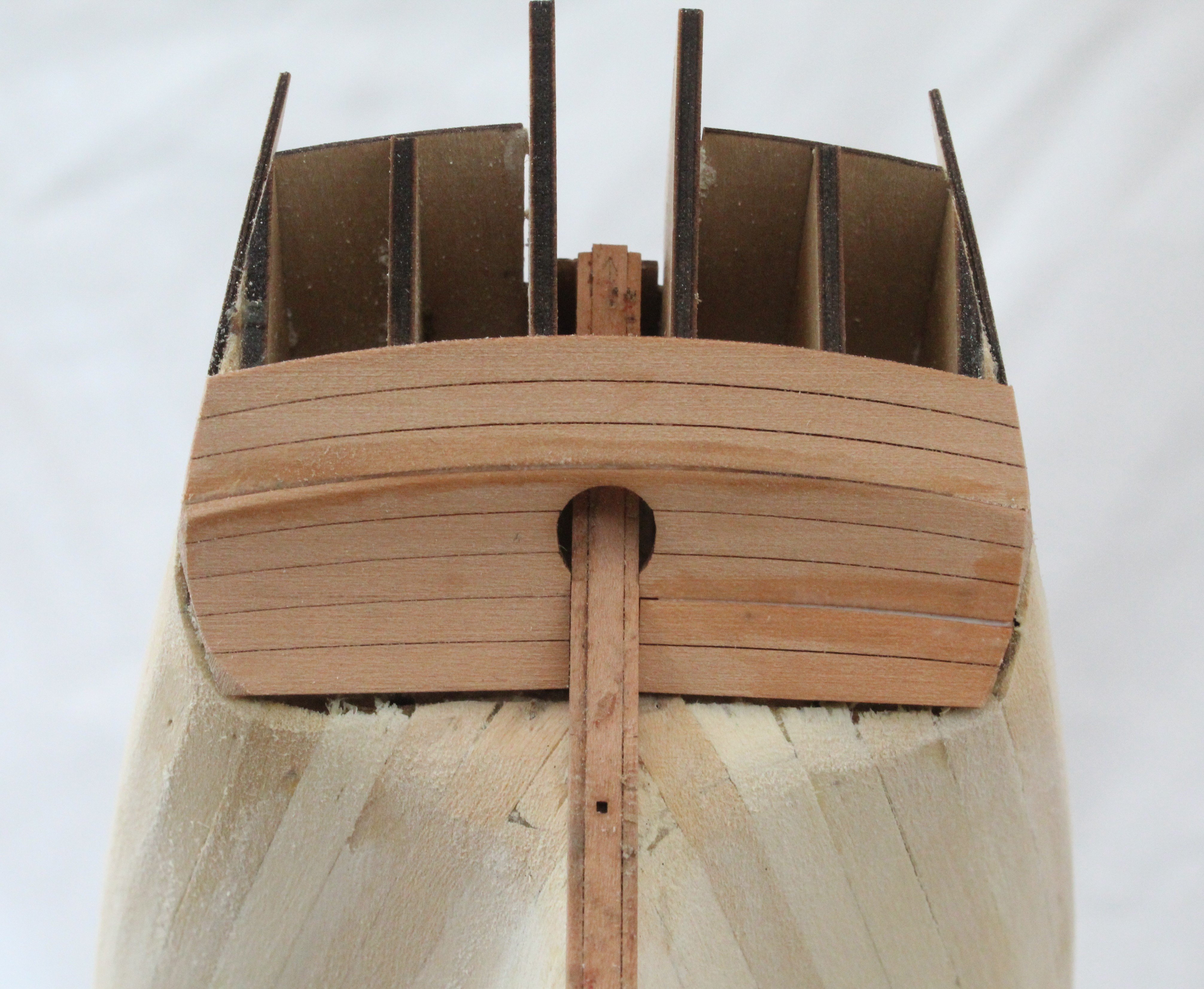 I made a cardboard template of the main deck which was placed over the frame which gave me a good indication of the camphor required for bulkheads 1-3. I also referred to the photos in DELF and Jim’s build log.