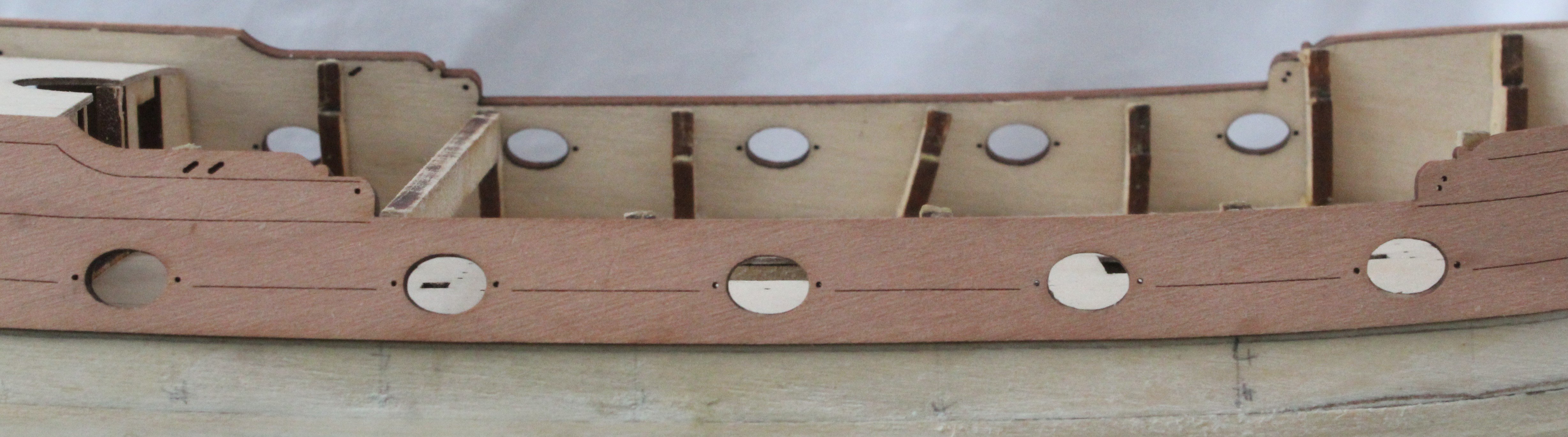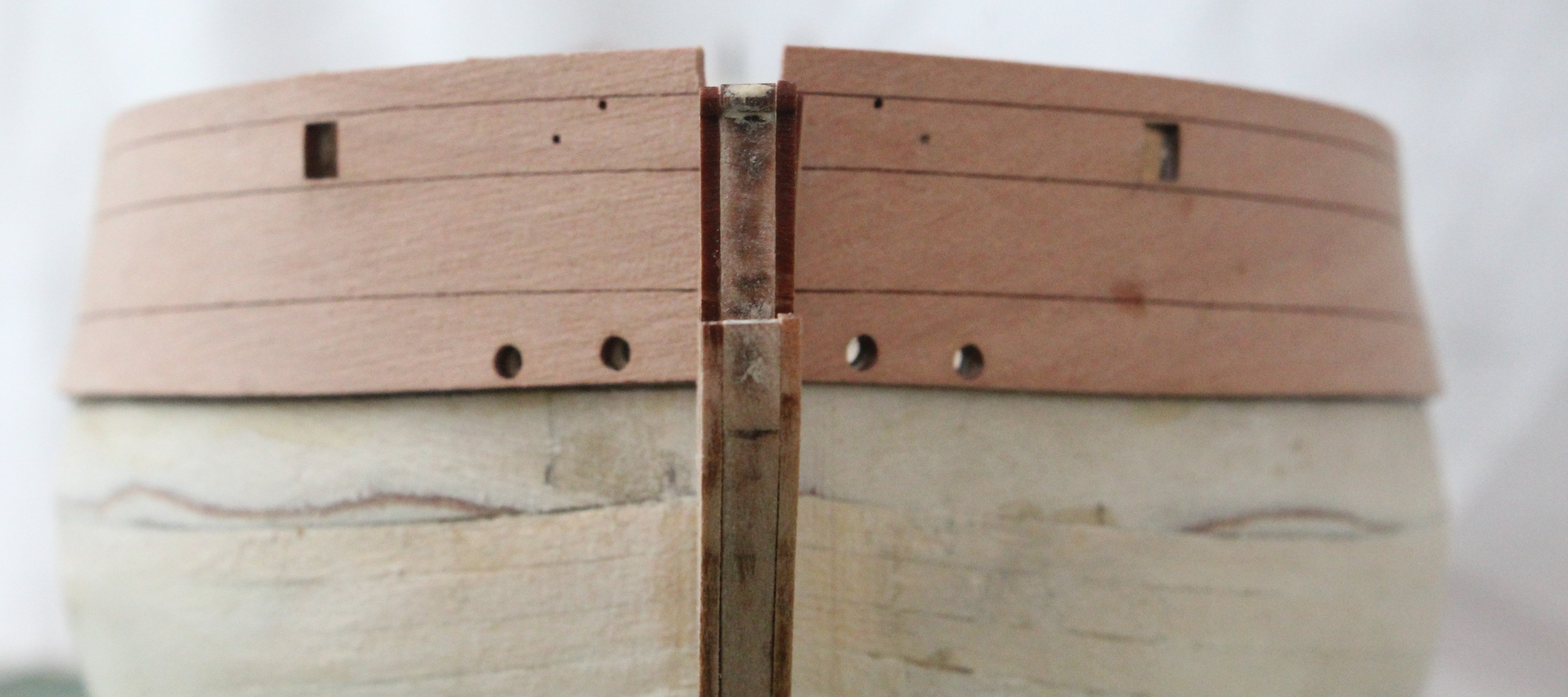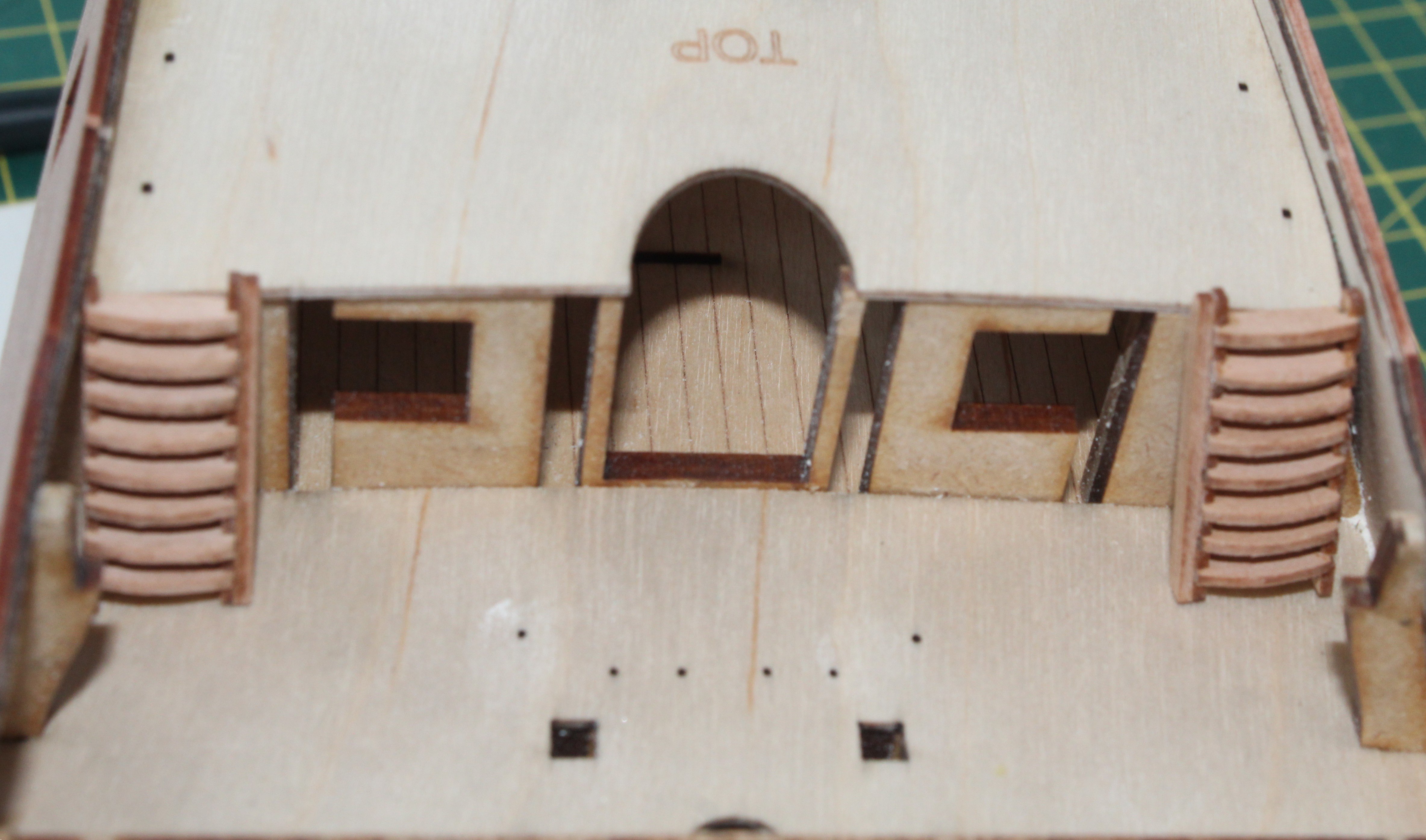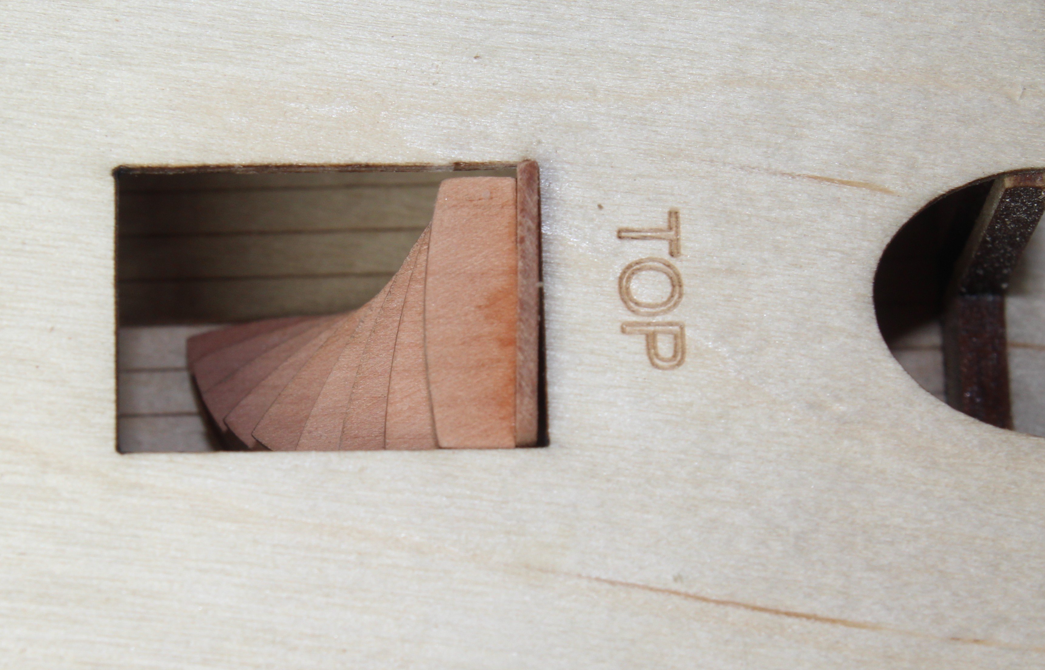 The final photo of this post shows the trial fit of a dummy mizzen mast with the upper and lower decks. The upper deck was aligned with the bulkhead ears but it was not engaged with the locating slots.