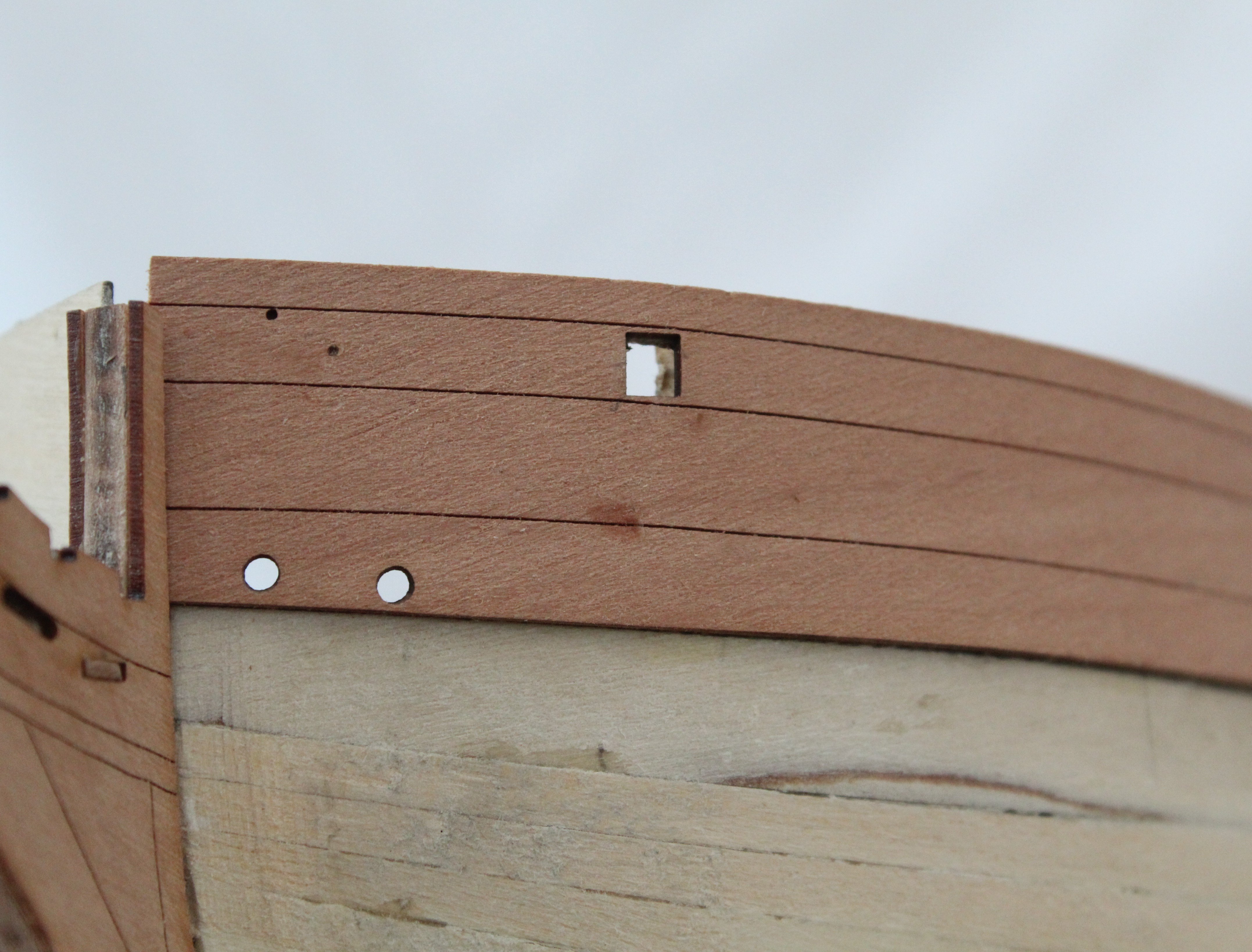 The two catheads were test fitted and I was pleased that these parts passed through the hole(s) in the hull.