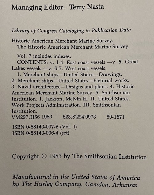 The Historic American Merchant Marine Survey volumes have a few color plates in them-- rendered artistically by the surveyors. I don't recall which volume, but they show a nice though not extensive range of colors on various parts of certain boats (fishing craft and/or coasters from the 19th C, [though undoubtedly 'touched-up' by the time of the survey] if I recall).