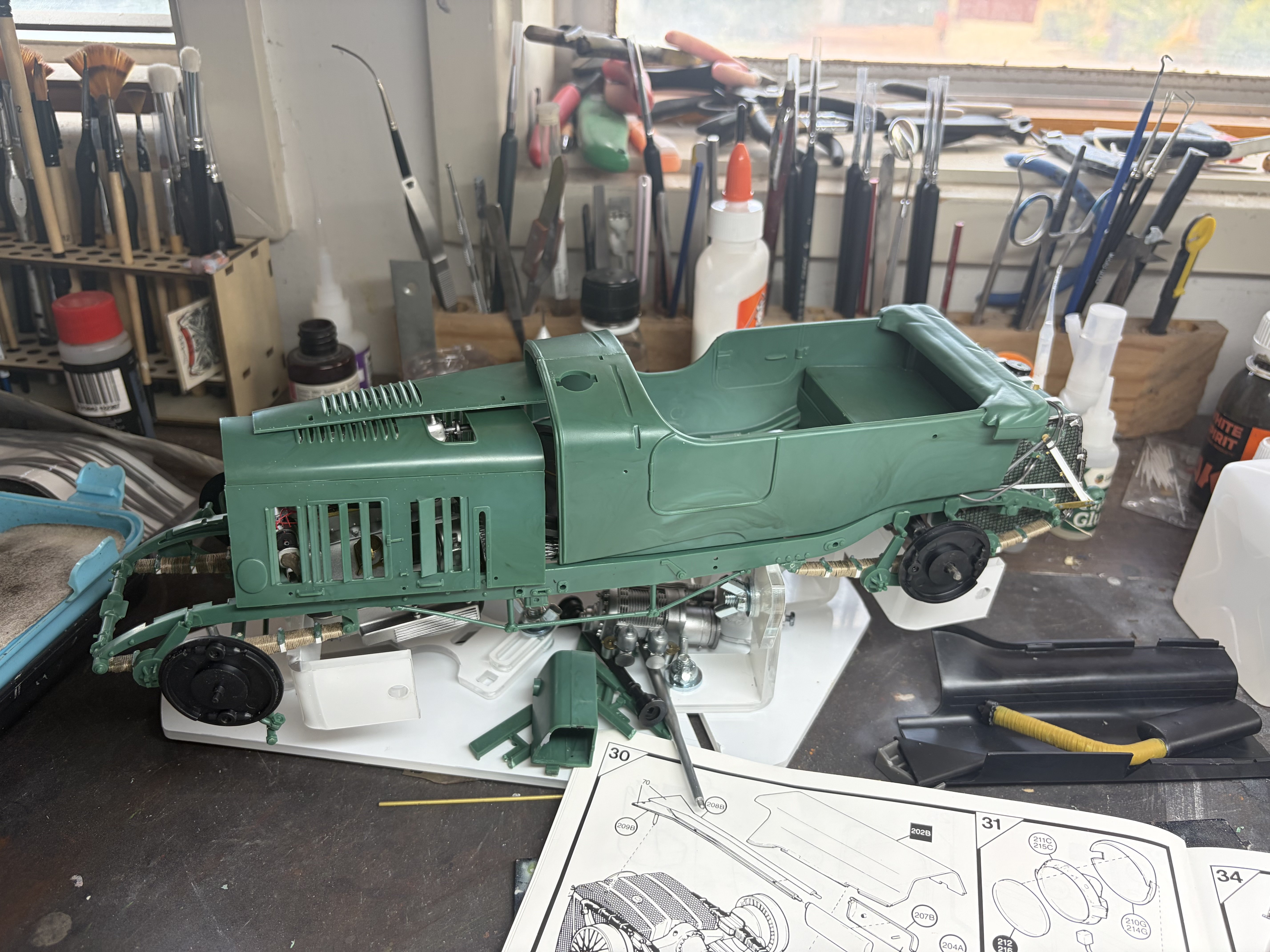 I bought this at a buy swap sell for AUD $100 a few years ago. I’ve been waiting on someone to make some 3D parts that don’t cost more than the kit. A local bloke at Leadfoot models does some lovely car stuff and recently did the wheels, brake drums and the footstep. There is a European mob that does a 3D fuel tank but out exchange rate makes it far more than I paid for the kit. It’s a beautiful car, I won’t show off the engine, others have done that to perfection and I’ll never get that good, so I’ll enjoy it for what I can.