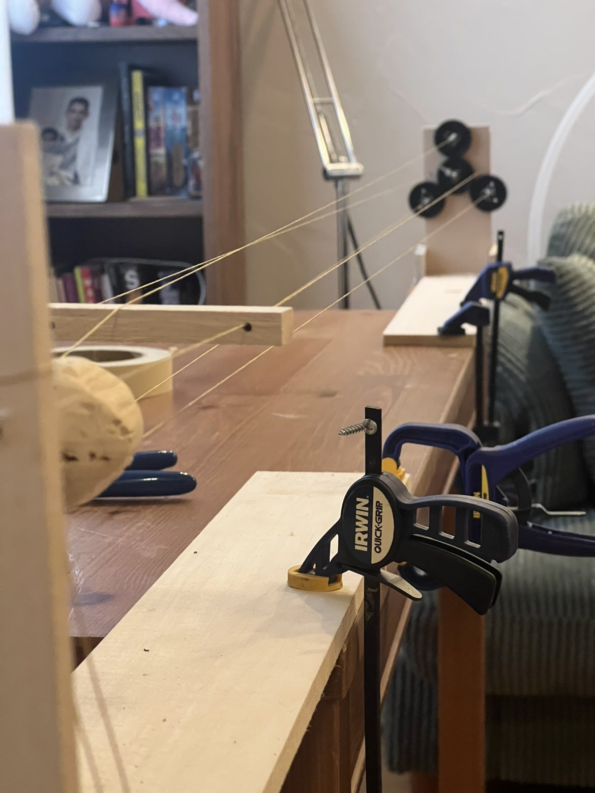 Firstly, I made a ropewalk! And will attempt to use only made-my-me rope for the entire build, I'm excited to start using it, but it'll be a while. Here's some rope I've made so far:
