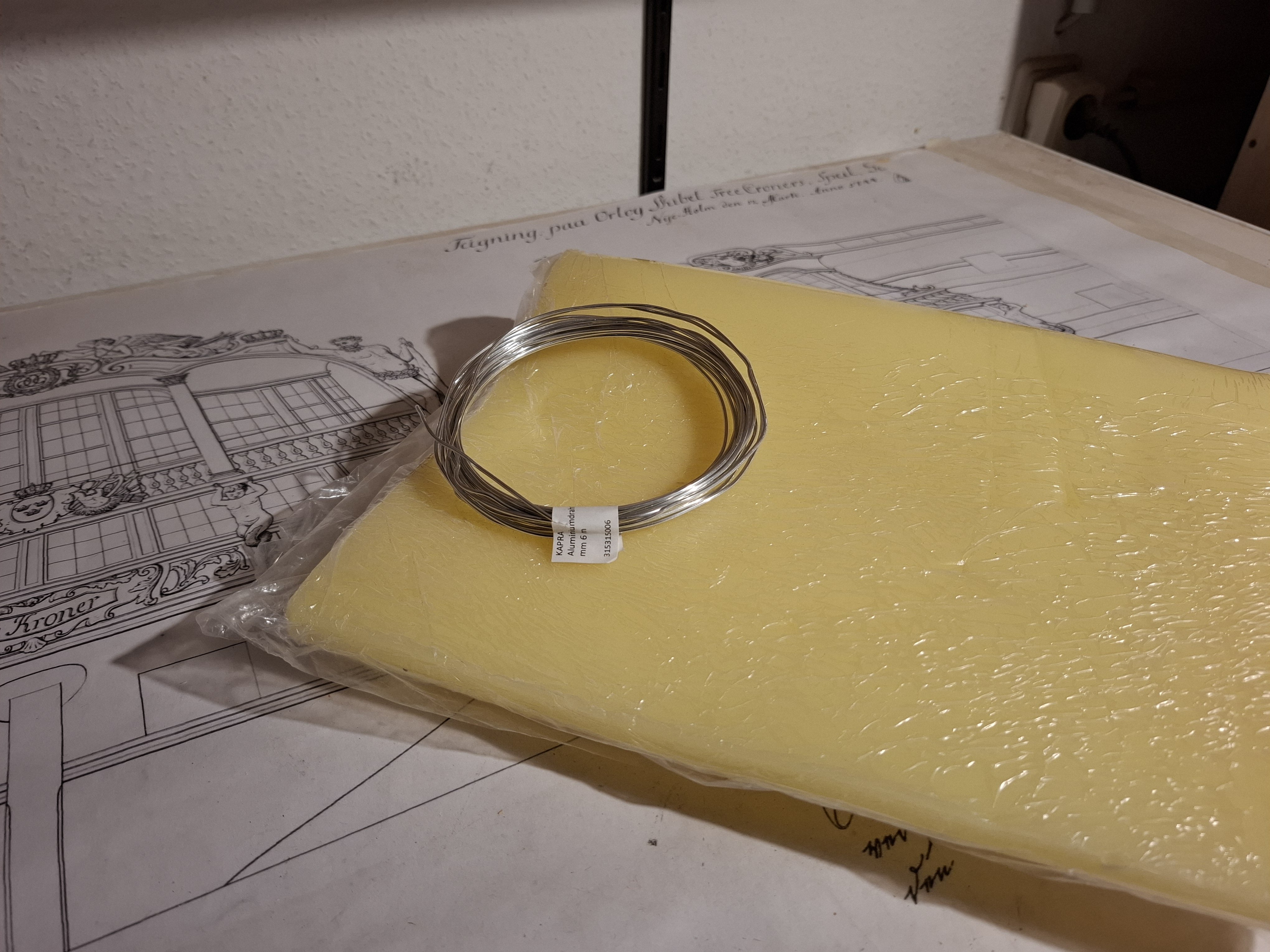 Why did you decide to settle specifically on this material? What are its particular characteristics? Is this an intermediate stage, with the intention that the decoration will later be cast in metal or plastic, or will it remain on the ship model as is? Will it be painted, or perhaps gilded with metal leaf? Is it even possible to apply any kind of finish to this wax?